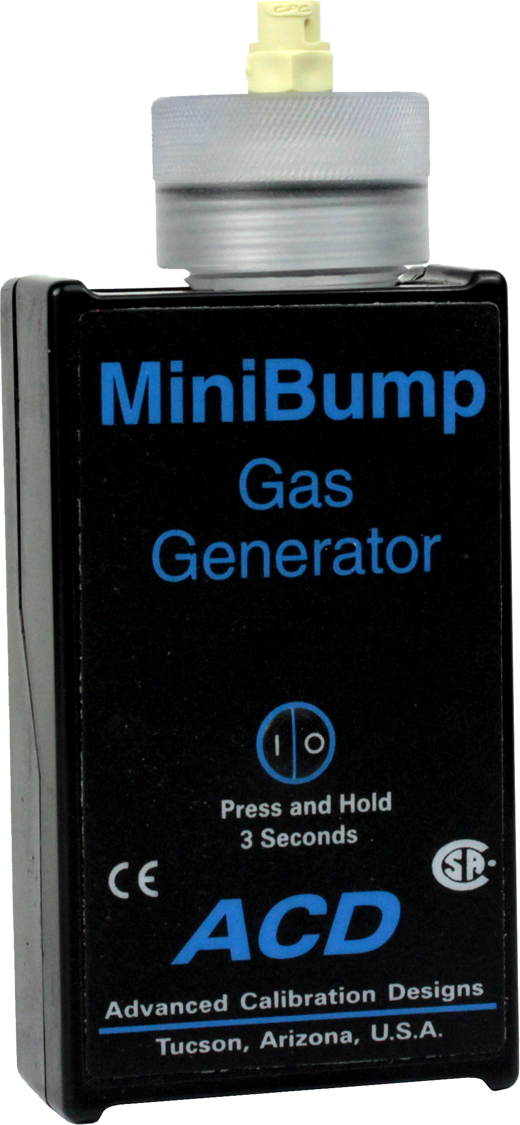 The MiniBump is the smallest, most lightweight and adaptive calibration gas source on the market. It is our lowest entry cost product as well as our simplest to use. It is certified to be intrinsically safe for operation on potentially explosive atmospheres. The MiniBump operates with interchangeable generating sources providing either fixed concentration output for calibration, or ‘bump’ output to drive your detector into alarm for operational verification. Available in hydrogen sulfide, chlorine, hydrogen and hydrogen cyanide. The complete device fits into your shirt pocket and provides the equivalent of five 58 liter cylinders of gas with each generating source.